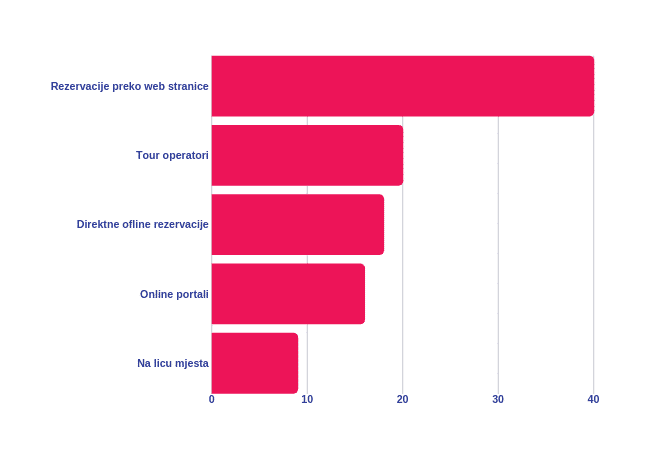 Prema istraživanju kojeg je Trekksoft sproveo 2017.godine, pitali su turističke agencije “Koji je najvažniji distribucijski kanal za vašu tvrtku?”. Prema rezultatima, direktne online rezervacije su najbitniji kanal za moderne turističke agencije- što nije veliko iznenađenje. Kada rezerviraju na vašoj web stranici klijenti mogu postaviti detaljna pitanja i bolje se upoznati s onim što nudite.