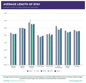 Hotelbeds grupa je također u maloj prednosti u dužini boravka u usporedbi s drugim kanalima s prosječnim noćenjem od 2.75 dana.
