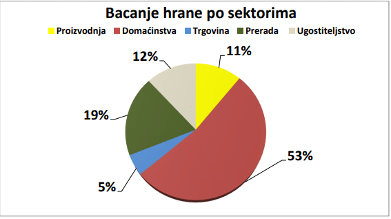 Slijedi primjer količine bačene hrane po sektorima u 2016.godini: