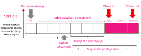 Period do kada se otkazivanje mora najaviti je jako bitan aspekt za kojeg morate izraditi strategiju koja je okrenuta ka povećavanju otkaznog roka kako biste imali vremena ponovno staviti sobe na iznajmljivanje a ne završiti s praznom sobom. U ovakvim okolnostima, otkazana rezervacija nije imala veliki utjecaj jer još niste povećali cijenu a imate dovoljno vremena da ponovno prodate sobu.